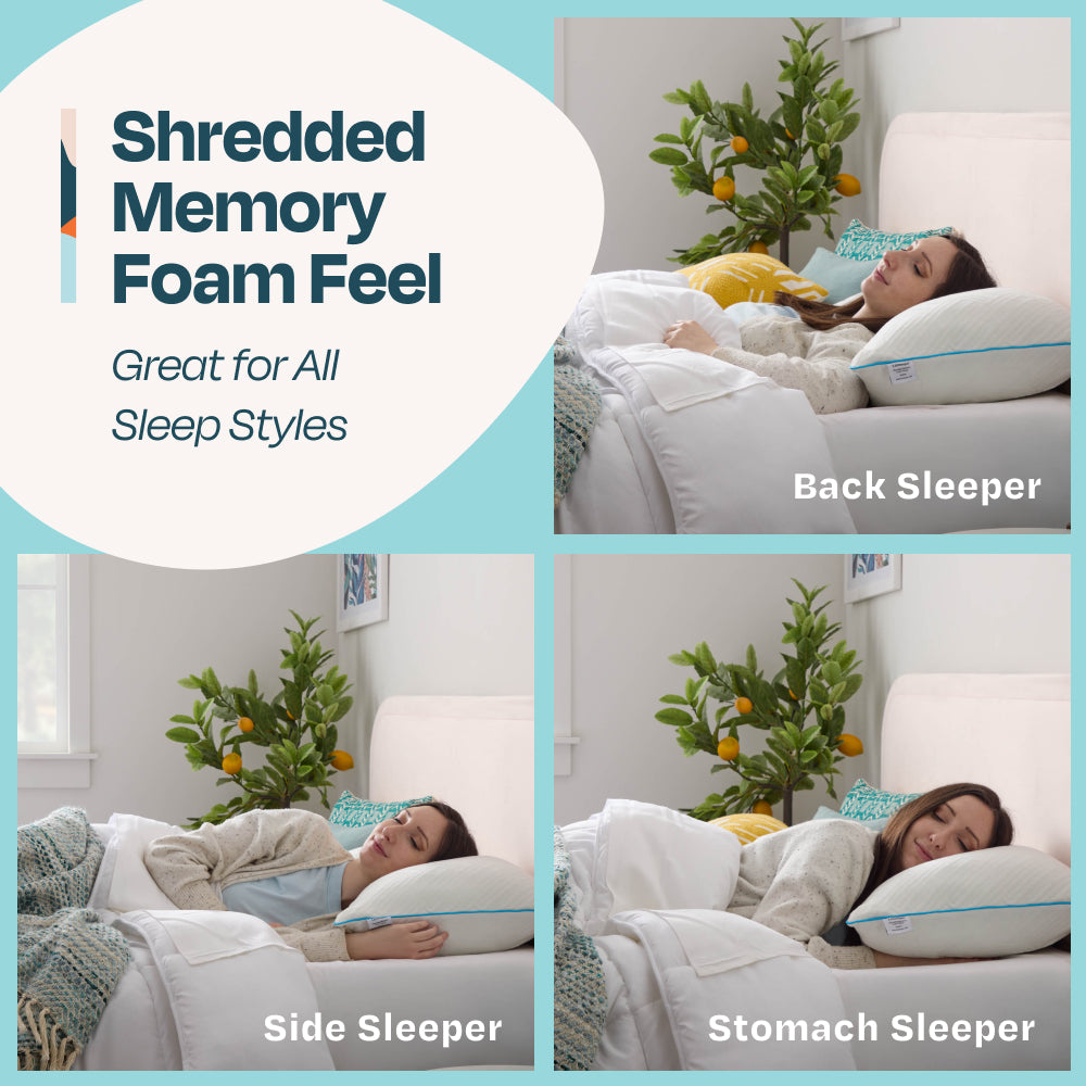If you are new to the pillow world, like have had the same pillow since childhood new, or not, then this shredded memory foam pillow is the perfect jumping off point for you. Filled with soft memory foam, this pillow contours to your head, neck, and shoulders for personalized comfort.